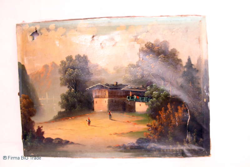 Schönes antikes Öl gemälde auf Leinwand Dorf-Ansicht Schöne Farben zum Restaurieren 2506