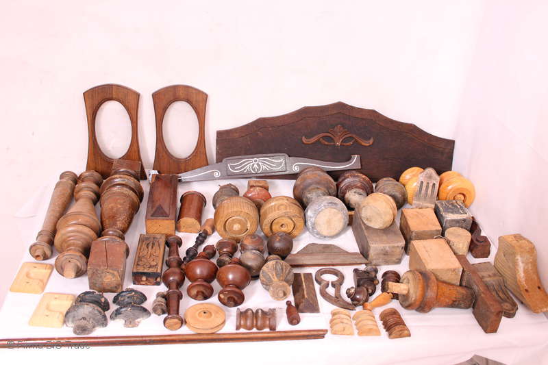 Großer Posten Zubehör für antike Möbel Gründerzeit Sammlung alten Holzrestaurationsbedarfs