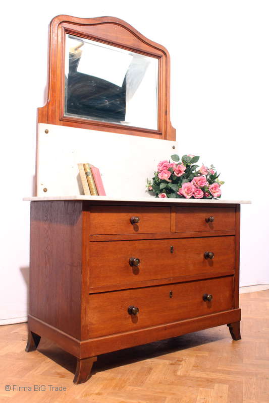 Antiker Jugendstil Waschtisch / Kommode / Spiegelaufsatz / Spiegelkommode / Marmorplatte 4 Schubladen