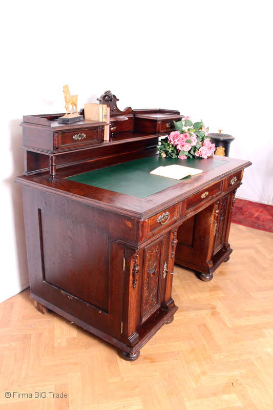 Antiker Gründerzeit Schreibtisch Bürotisch Sekretär m. Aufsatz Ledereinlage Viel Stauraum