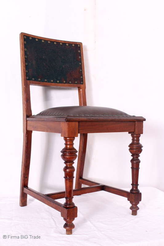 Antiker Gründerzeit Stuhl Lederstuhl Lederprägung Salonstuhl Schnitzereien / Nr. 231