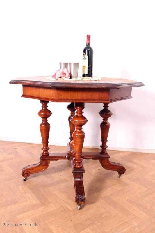 Antiker 8eckiger Gründerzeit Tisch Raucher Tisch Spieltisch Salontisch Rollen Cafetisch zum Aufarbeiten