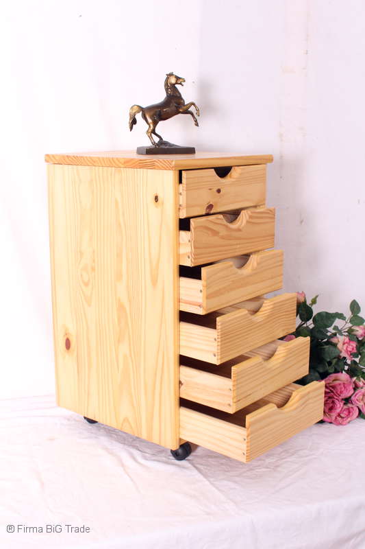 Schubladenschrank Kommode Roll-Container Büro Container Massiv Holz Rollen 7 Schubladen