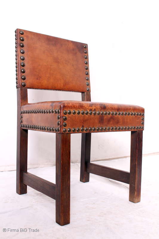 SELTEN! Antiker Lederstuhl Tafelstuhl Ritterstuhl Salonstuhl Ziernägeln / 2 Vorhanden / Nr. 443/1