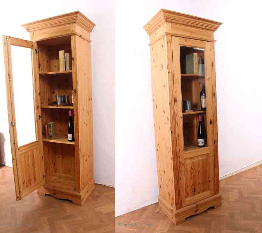 Schmale Glasvitrine 1türige Sammlervitrine Landhaus Bücherschrank Wohnzimmerschrank Weichholz massiv