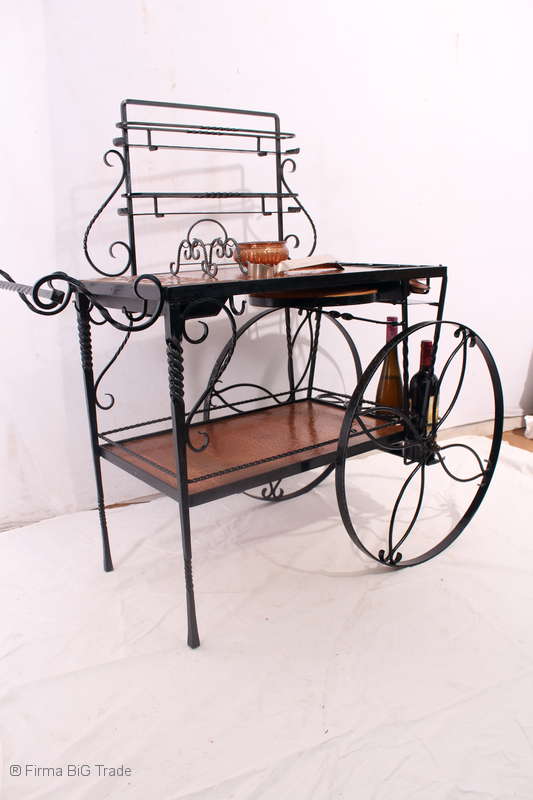 SELTEN! Retro Servierwagen mit Warmhalte Bernnern Eisen-Räder Pizzaablage Weinregal Kupferplatten