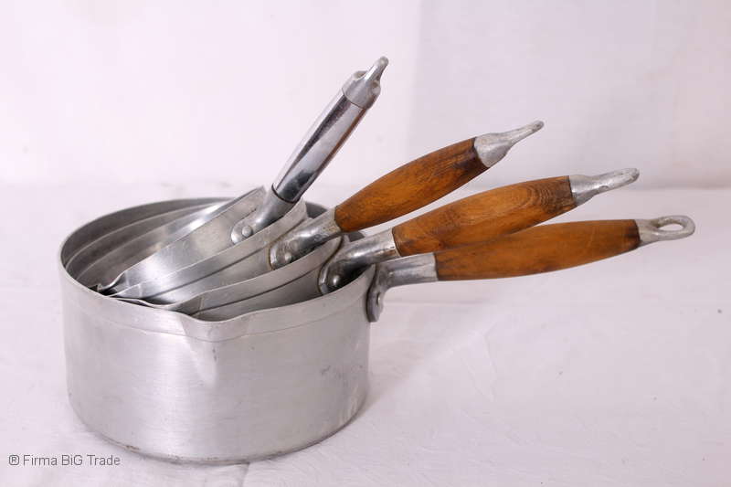 4 alte Kochtöpfe Campingtöpfe Stielpfannen Holzgriffe Cowboy Töpfe