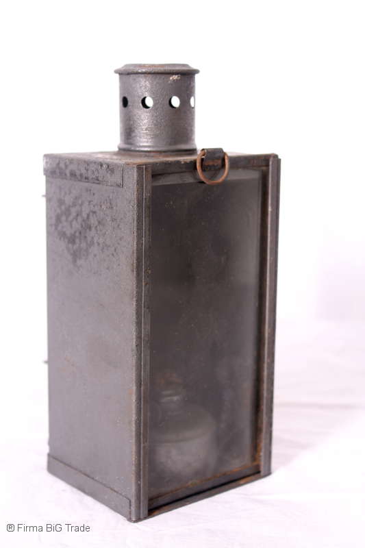 Antike Bergbau-Lampe / eckige Minenlampe mit Griff / Antique Mine Worker Lamp