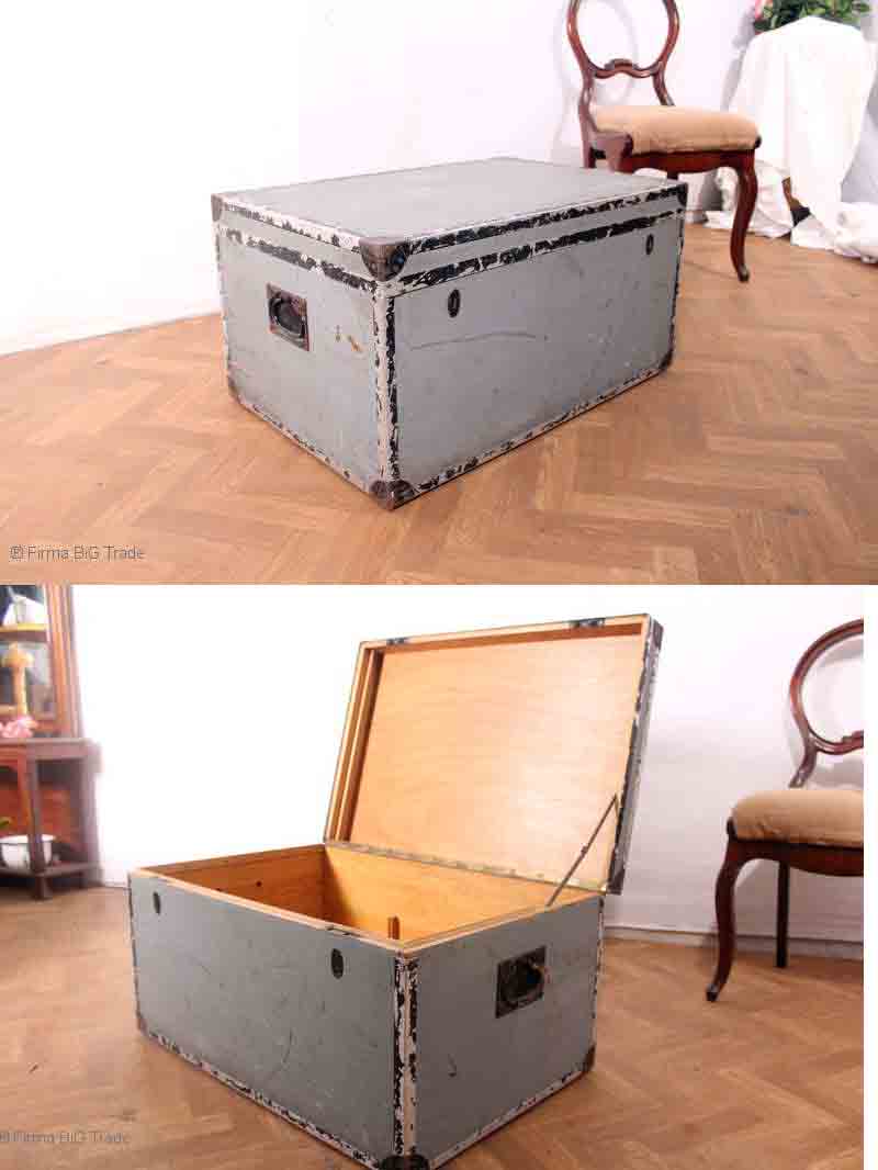 Große antike Transportkiste Truhe Werkzeugkiste Übersee Truhe Flachdeckeltruhe Griffe