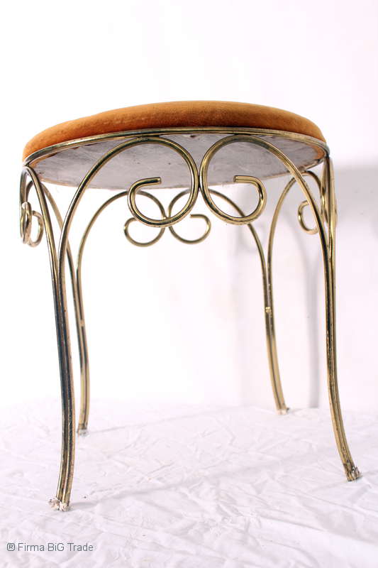 Selten! Zauberhafter runder Schminkhocker Polsterhocker Metall Hocker Verziert Gold-Farbe