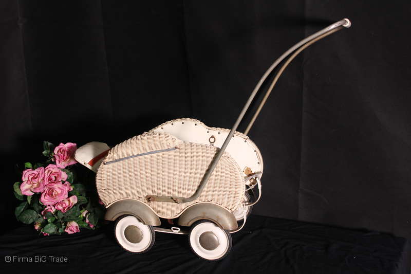 Wunderschöner Antiker Puppenwagen / Korbwagen / Geflecht / Radkappen / Nice German mid Century Pram