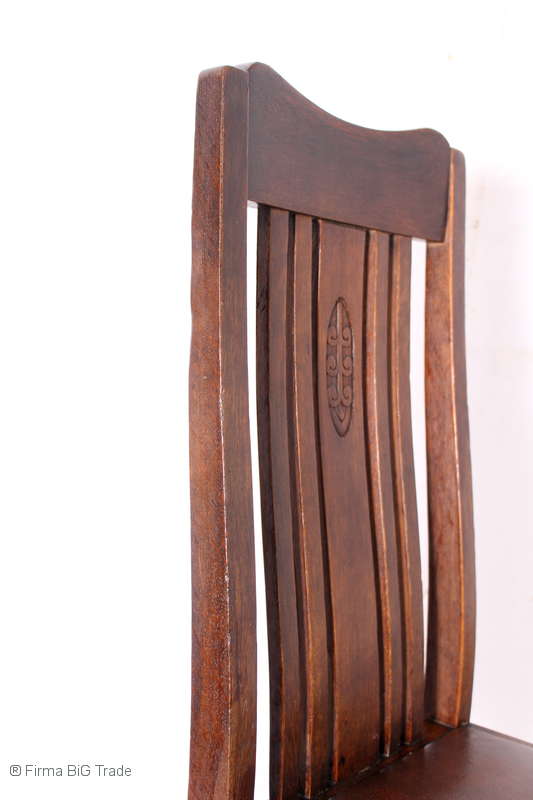 Antiker Jugendstil Hochlehnenstuhl / Polsterstuhl / Holzstuhl / Lederstuhl 3 vorhanden Eiche massiv / Antique Art Nouvea