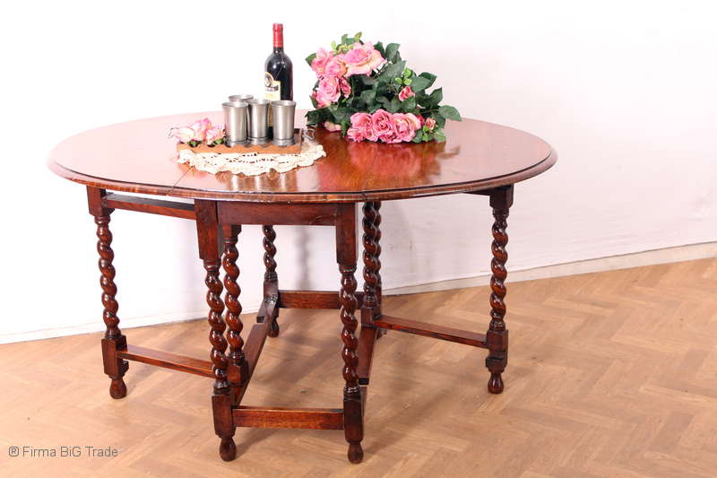 Eleganter antiker englischer Salontisch Esstisch Klapptisch / Zopf Schnitzereien Oval