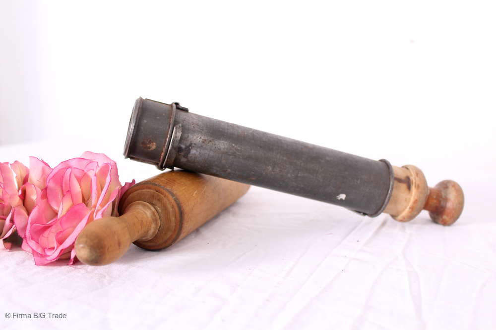 SELTEN! antike Teigspritze antike Konditorei Holzkolben Metallgehäuse und Nudelholz