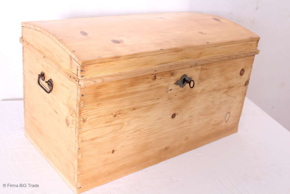 Zauberhafte antike Biedermeier Runddeckeltruhe / Schatztruhe /Truhe / Weichholz Massiv / Eisengriffe
