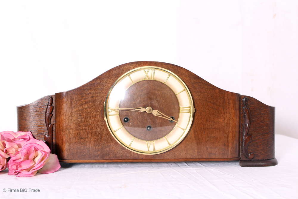 Schöne große antike Art Déco Kaminuhr / Uhr / Holzgehäuse / Gong / Mechanisches Werk Römische Zahlen