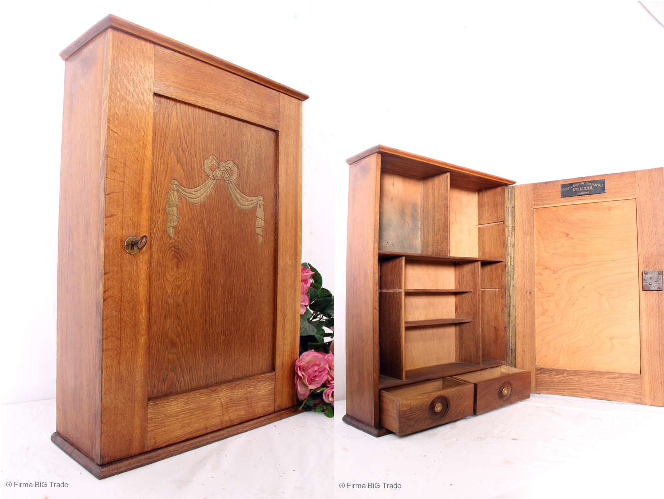 Großer antiker Jugendstil Hängeschrank Medizinschrank Innenschubladen Badeschrank UTILITAS LAUSANNE