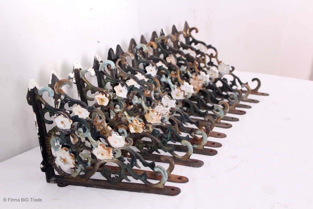 Schöne antike Regalstütze Wandkonsolenstütze Schmiedeeisen Blumenverzierung / 12 Vorhanden