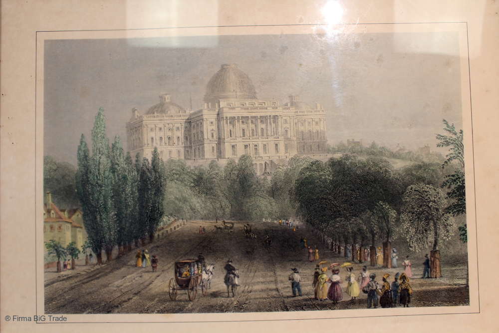 Antikes Farbbild VIEW OF THE CAPITOL AT WASHINGTON / Handcolored Engraving / Holzrahmen Nr. 2516