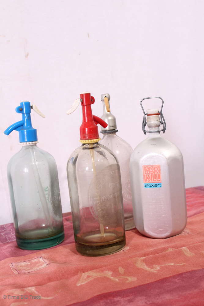 RETRO! 4 nostalgische alte Soda Flaschen 3 Glas und 1 Metallflasche Deckel