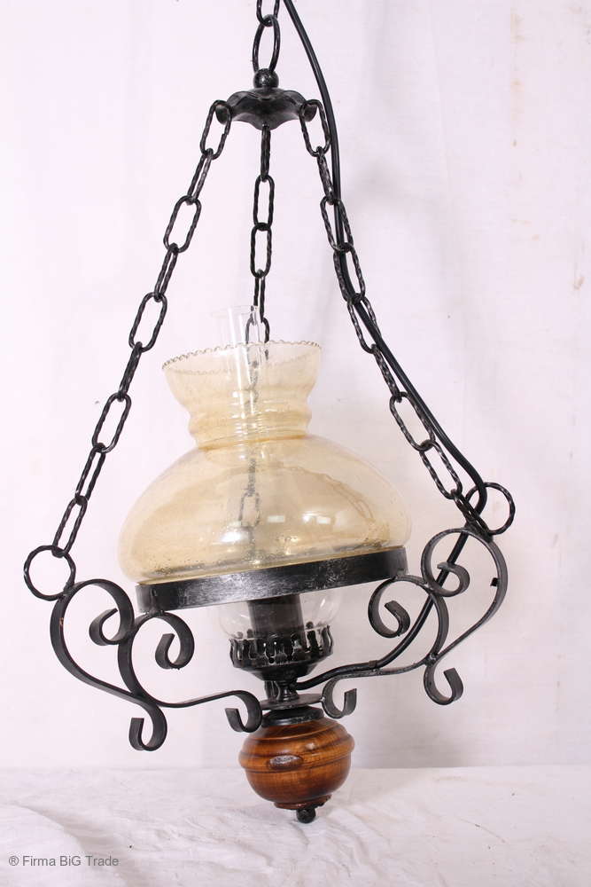 RETRO! Formschöne Bauernlampe Deckenlampe Küchenlampe Esstischlampe Schmiedeeisen u. Holz Nr. 2