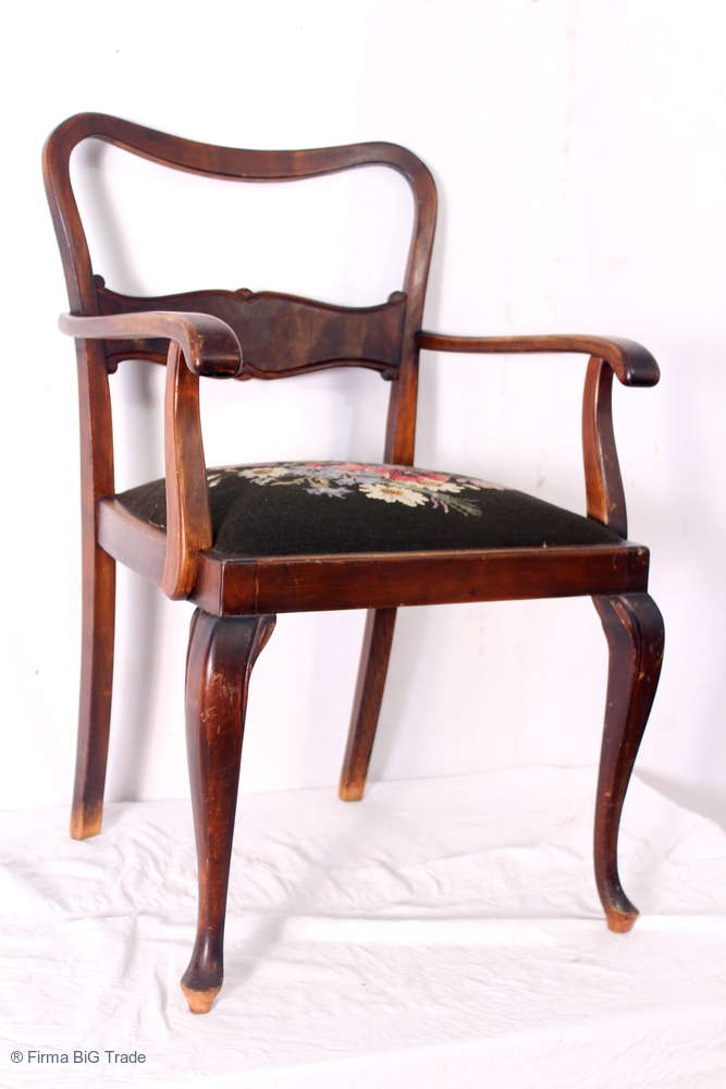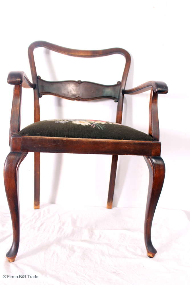 Eleganter Antiker Chippendale Armlehnenstuhl Schreibtischstuhl Polsterstuhl Gobelin Stoff 371-1
