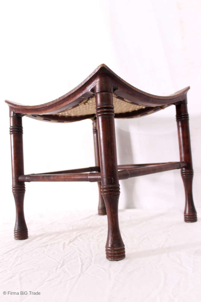 SELTEN! Antiker Jugendstil Hocker Sitzhocker Geflecht Formschön verziert / Very nice antique Art Nouveau Stool