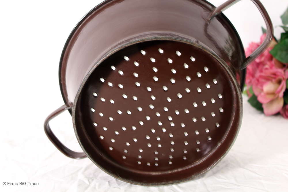 Rundes antikes Metallsieb / Küchensieb / Emailliertes Sieb / Antike Küche / Griffe / Nr. 3 / Antique kitchen colander