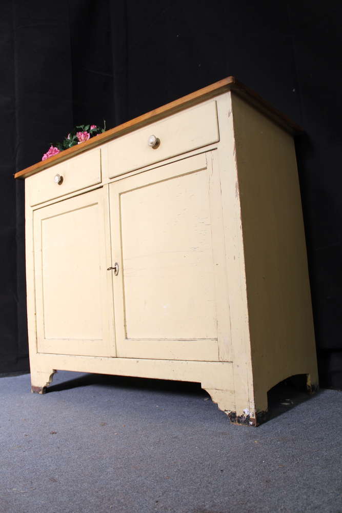 Shabby Chic! Antiker Küchenschrank Kommode Flügeltüren Holzschrank Regalschrank / 2 Schublade