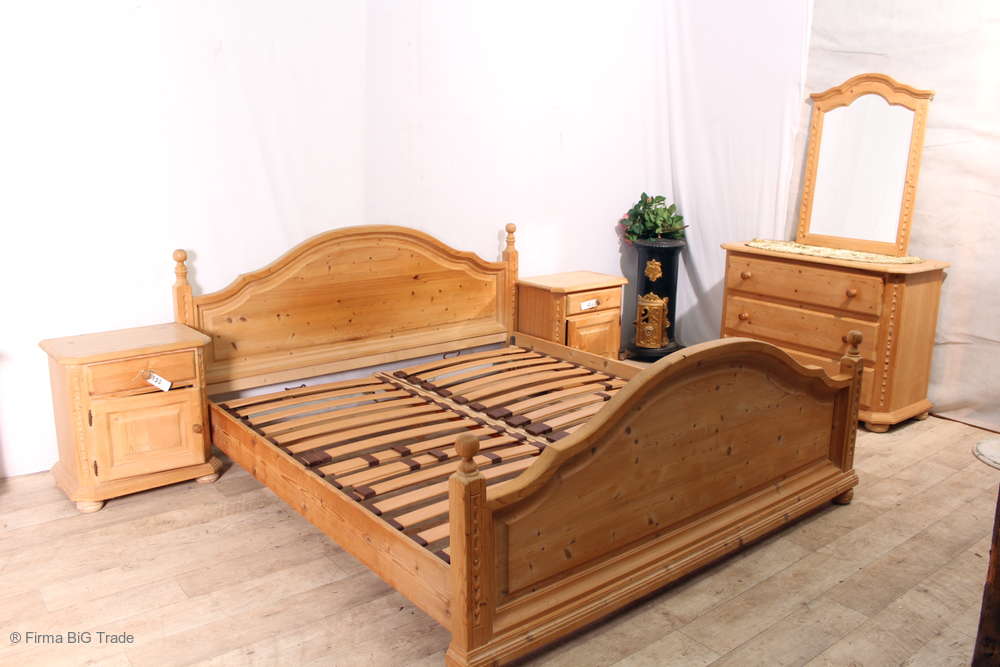 7tlg. Landhaus Schalfzimmer / Bauernzimmer Ehebett m. 2 Lattenroste / 2 Nachttische / Kommode mit Spiegel / Massiv Holz