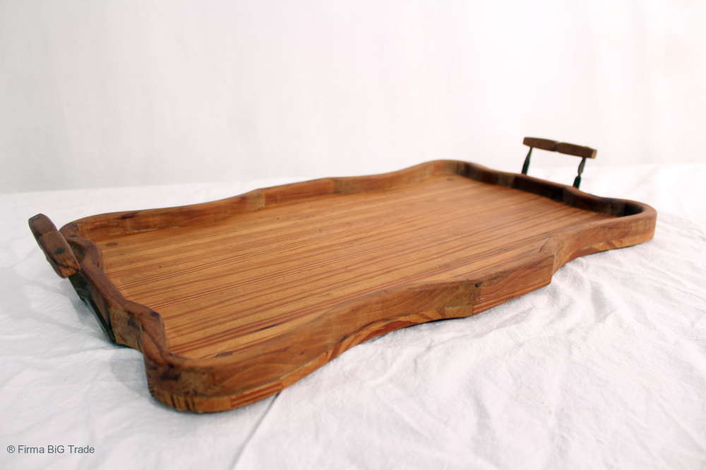 Formschönes Großes Holz Tablett / Serviertablett / Kunsthandwerk / Griffe / Wellförmig