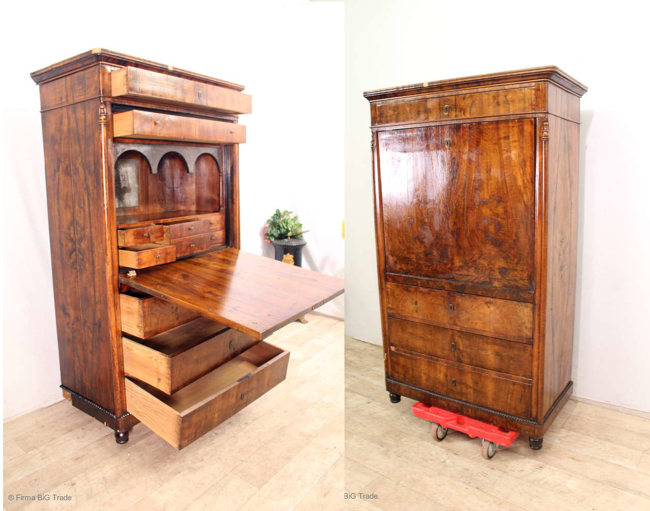 Antiker Biedermeier Sekretär / Schreibsekretär / Herrenzimmer Sekretär / Wurzelholz / zum Aufarbeiten