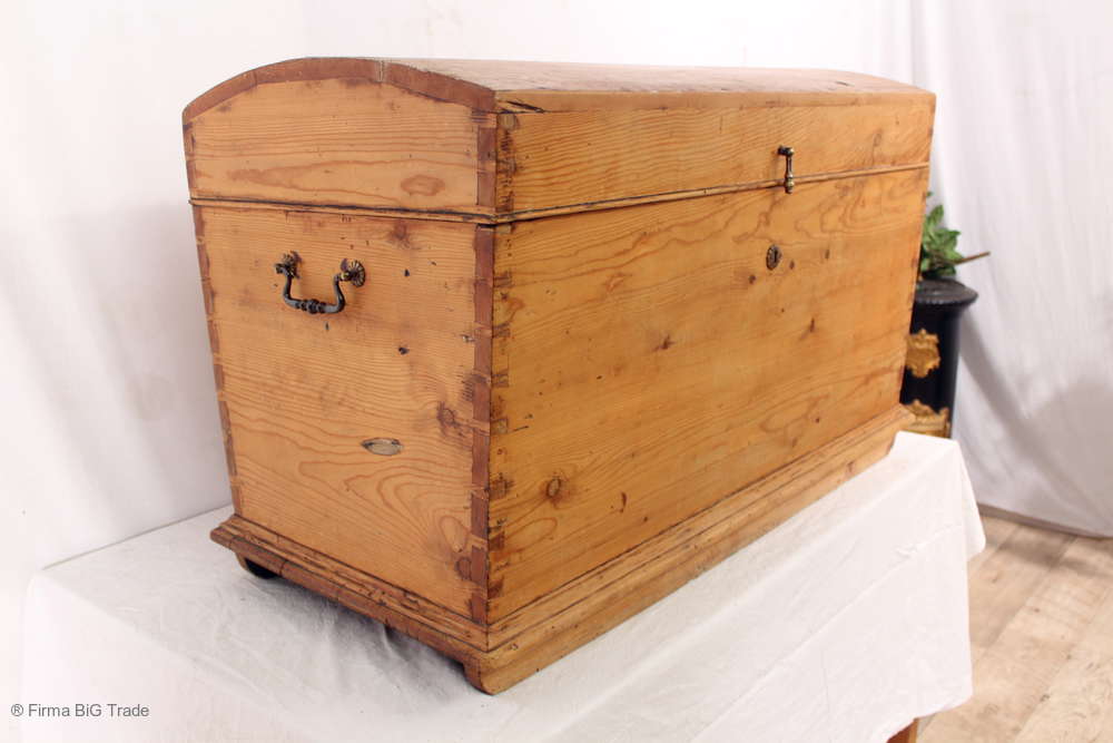 Antike Biedermeier Runddeckeltruhe Wäschetruhe große Holztruhe Truhe Hochzeitstruhe Weichholz massiv