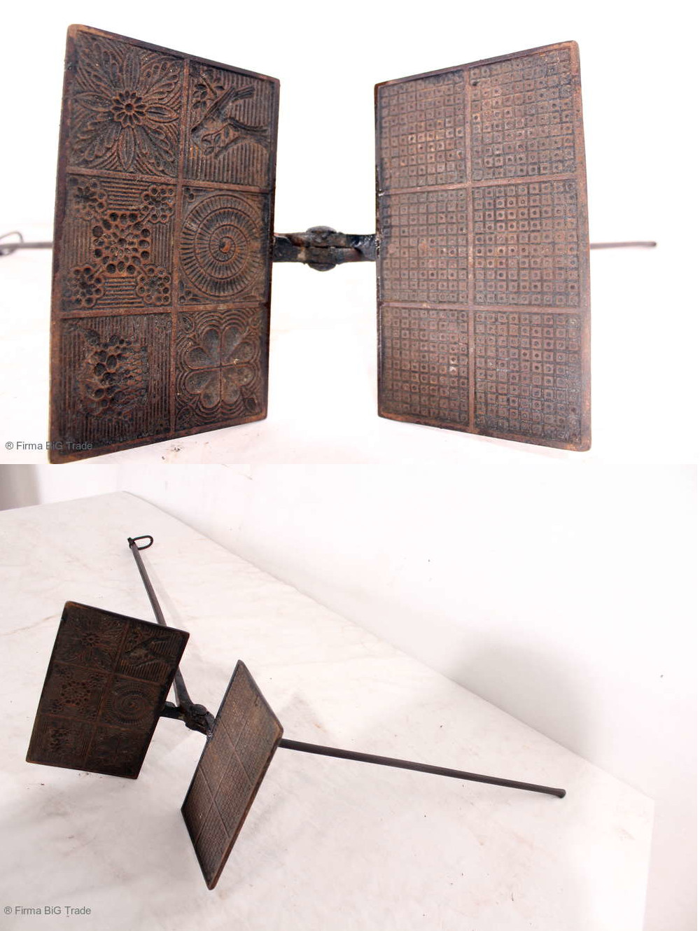 Museales Waffeleisen antike Bäckerei Große Backflächen schöne Muster Langer Griffe Eisenguss