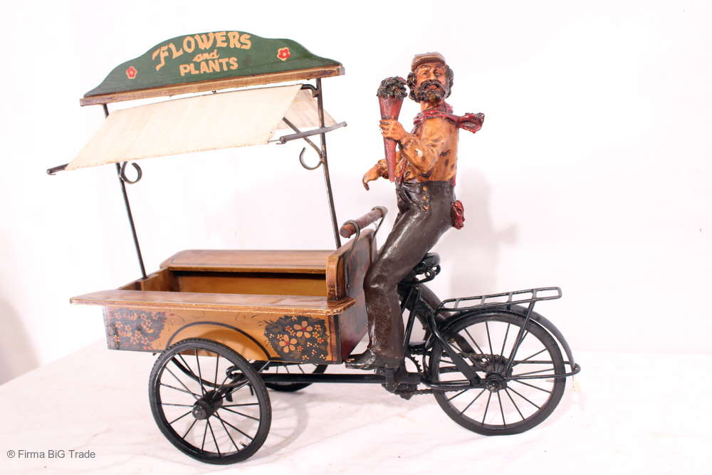 Verkaufswagen Dreirad Blumenverkäufer Holzwagen Speichenräder Blumenhändler auf Dreiradwagen Holzkutsche