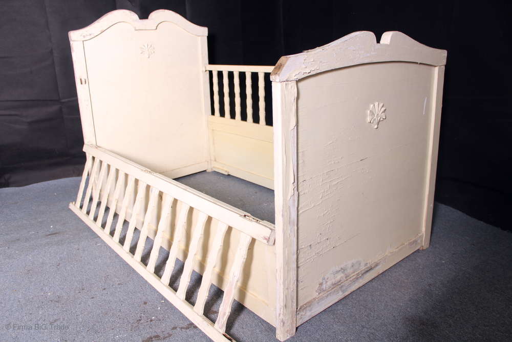 Shabby Chic! Antikes Jugendstil Kinderbett Bett m. Galerie / Seitenklappe / Altweiss / Zum Aufarbeiten
