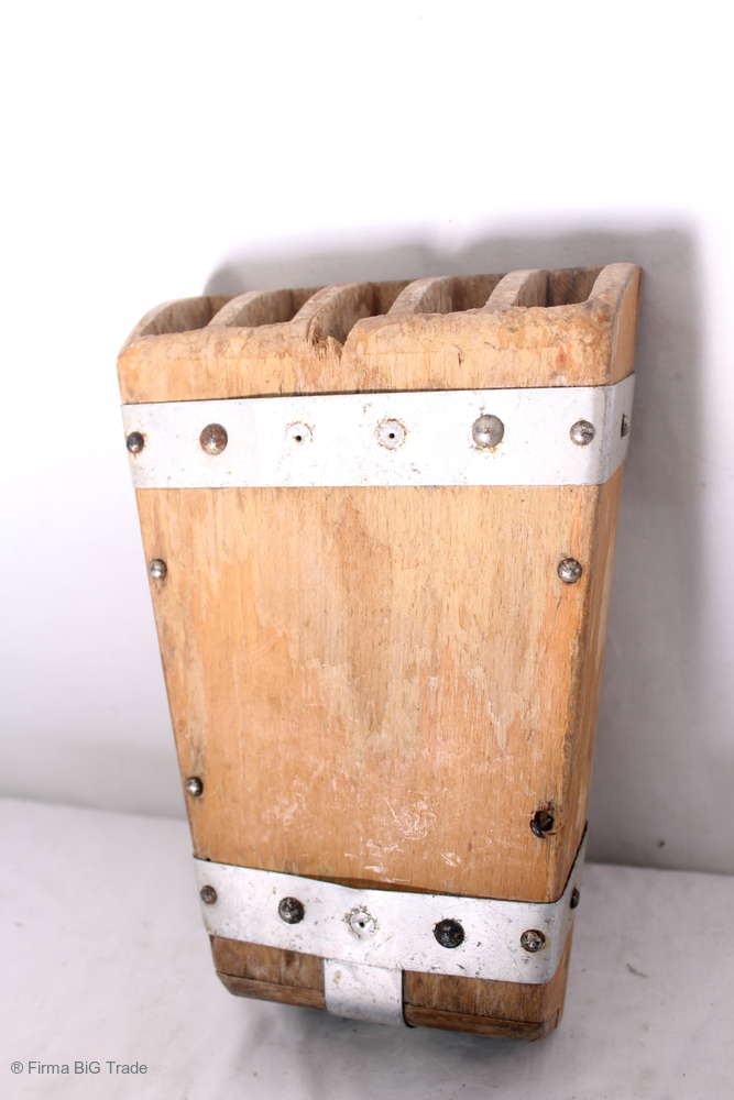 Alter selbstgebauter Schlachter Messerschacht Messerblock aus Holz / Holz-Werkzeughalter für Gürtel