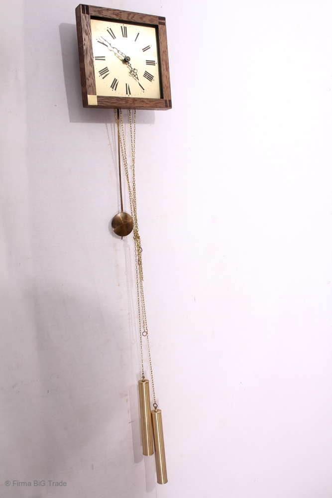 60er Jahre Wanduhr Pendeluhr Uhr 2 Gewichte u. Ketten Made in W. Germany / Defekt