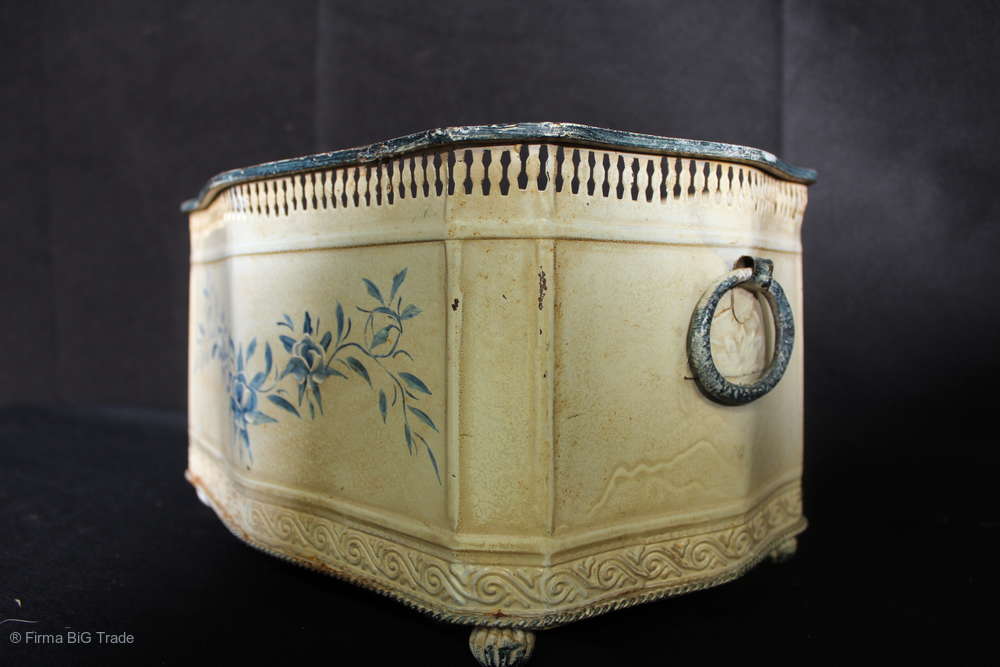 Shabby Chic! Wunderschöner Blech-Blumentopf / Pflanzentopf Blumenmotive Antik Stil / Kolonial Stil