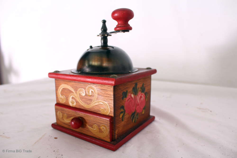 Alte Kaffeemühle m. Bauernmalereien / Kaffee Mühle mit Kurbel u. Schubkästchen / Gewürzmühle