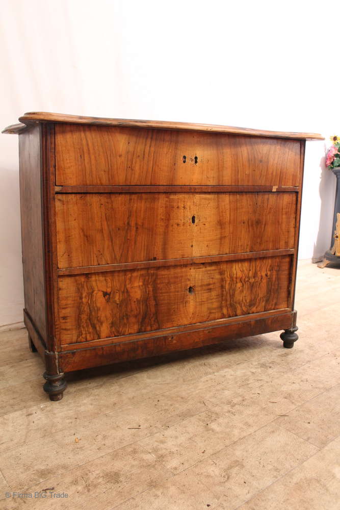 Antike Biedermeier Kommode schöne Holzmaserungen Wellendeckplatte Schubladenkommode / zum Herrichten