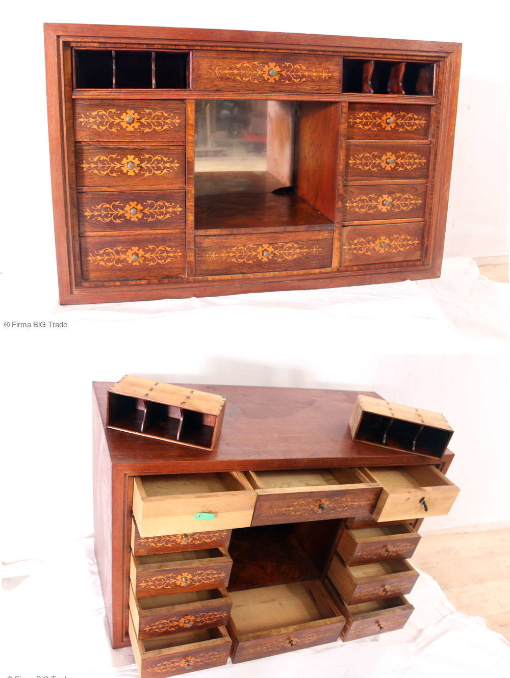 Antiker Biedermeier Sekretär-Einsatz 10 Schubladen, 2 Geheimfächer, Brieffächer Intarsien / Schubladenschrank