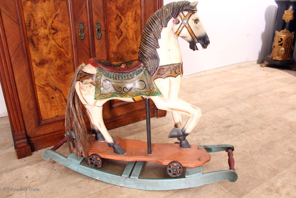 Zauberhaftes Holz Schaukelpferd / Karussellpferd / Holzpferd m. Kufen Schnitzereien bemalt