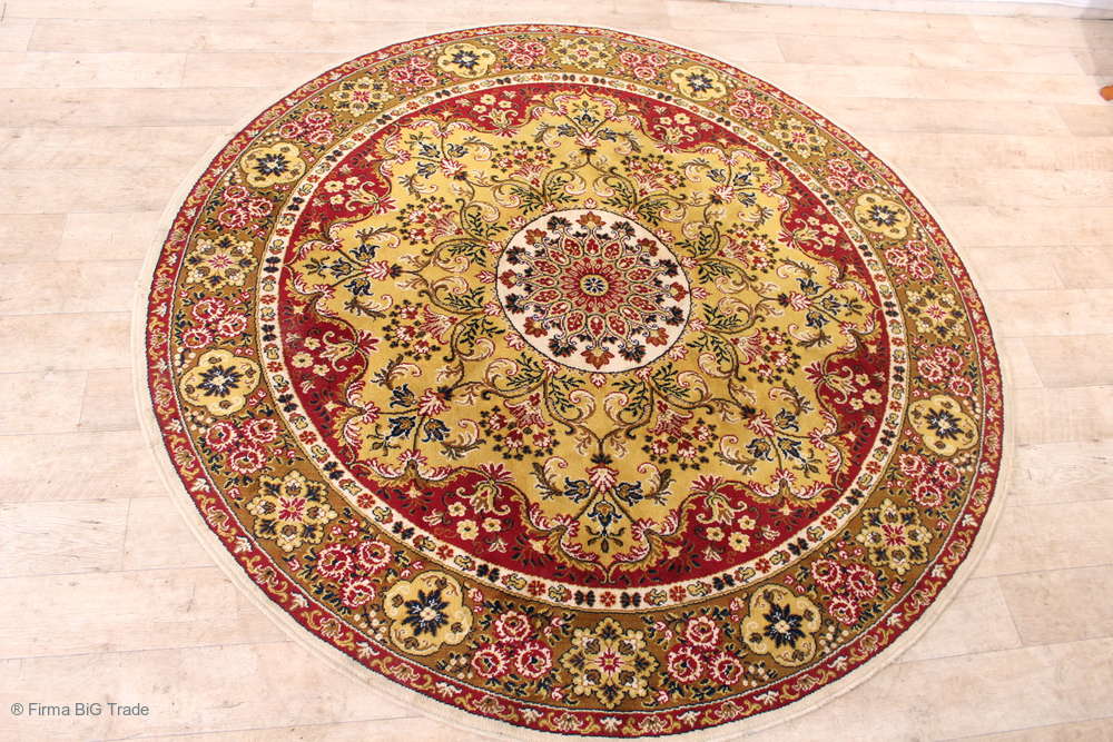 Schöner runder Teppich Wohnzimmerteppich / Orientalische Farben und Motive Durchmesser 227 cm