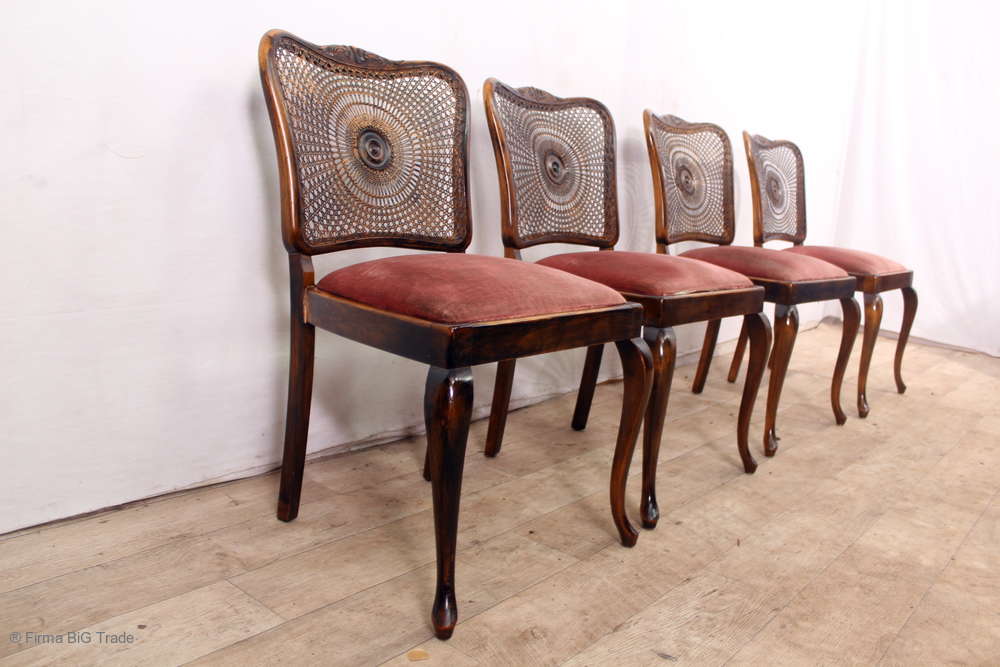 4 schöne antike Chippendale Stühle Salonstühle Esszimmerstühle Nussbaumholz Sonnengeflecht