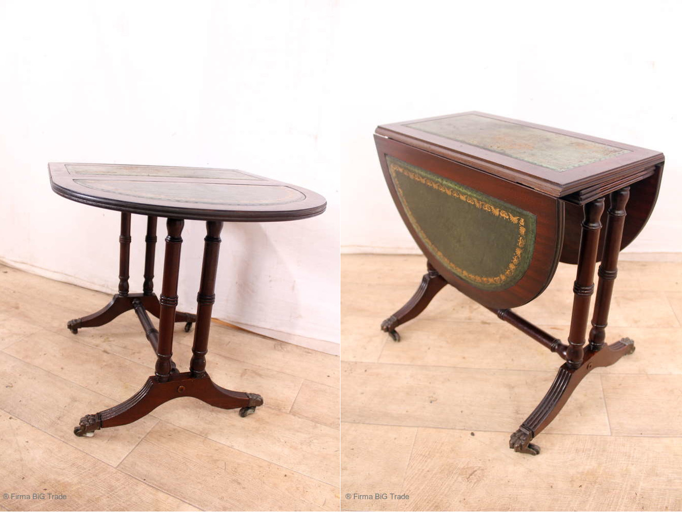 Eleganter englischer Klapptisch Beistelltisch Couchtisch Lederauflage Löwenfüße / Metallrollen