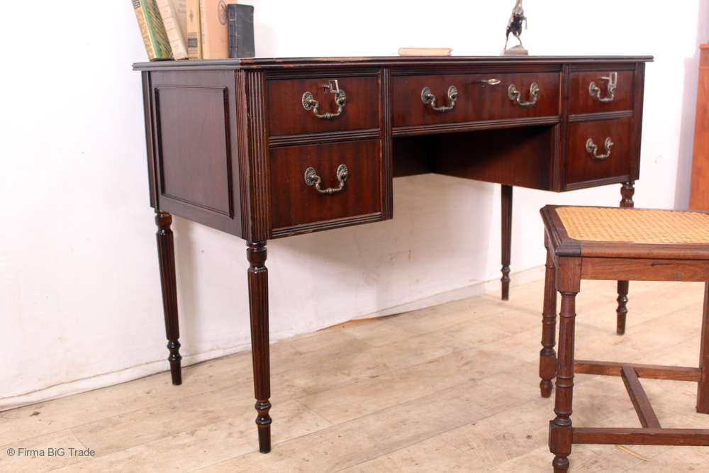 Eleganter englischer Schreibtisch Bürotisch Damenschreibtisch Lederauflage 5 Schubladen
