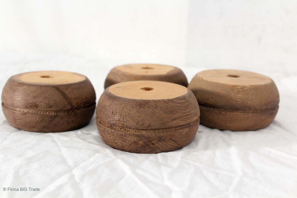 4 schöne runde Schrankfüße Holzfüße Möbelfüße für Barock Schränke Zubehör Massivholz / I