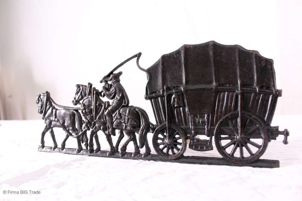 Schönes Großes Eisenbild Kutsche Metallbild Droschke Pferdekutsche Pferde Gussbild
