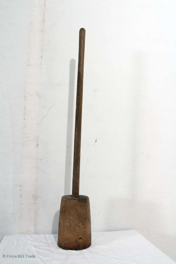 Großer Antiker Getreidestampfer - Holzkolben- Bauernwerkzeug m. Stiel / Antique Farmer wooden Tool